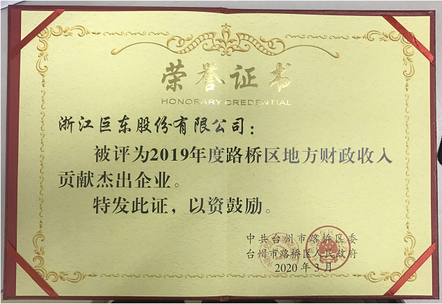 2019年度路橋區(qū)地方財政收入貢獻(xiàn)杰出企業(yè)